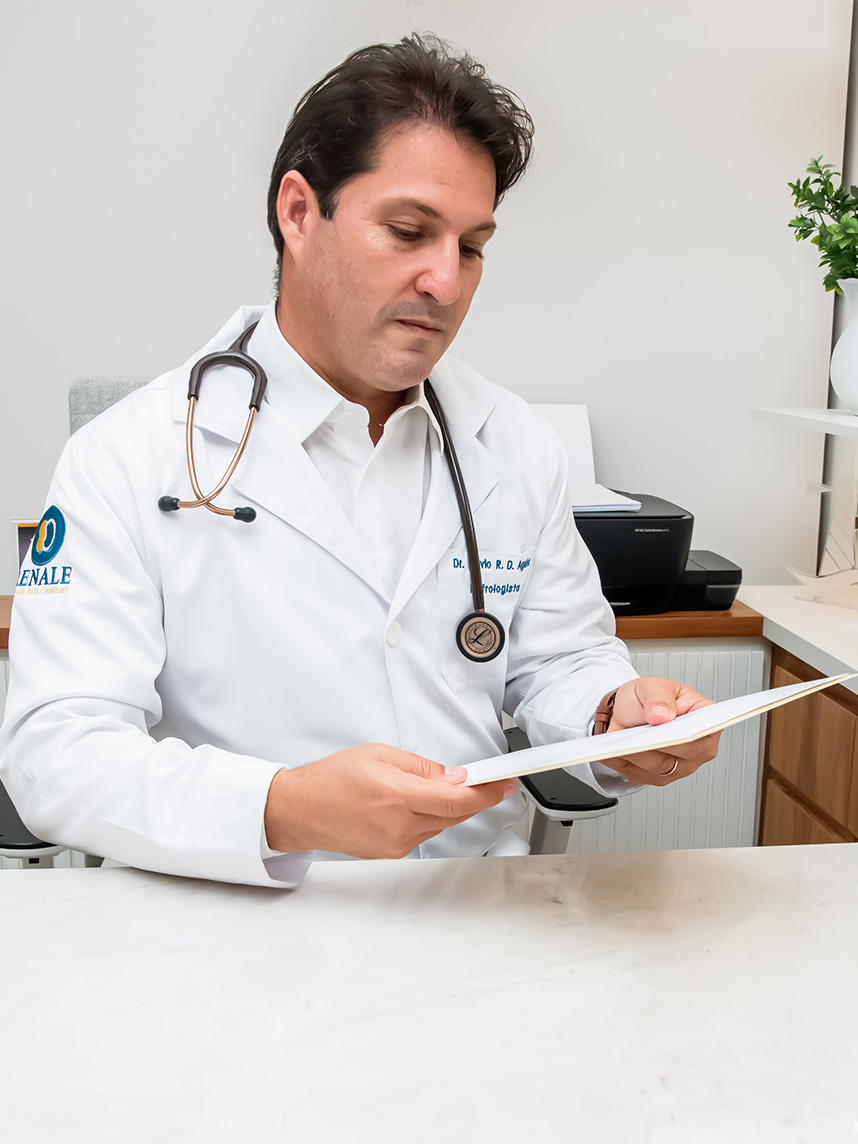 Sim, é altamente recomendável. Se você possui exames de sangue, urina ou imagem realizados nos últimos 6 meses, traga-os para o encontro. Eles servem como um ponto de partida para entendermos a evolução do seu quadro. Caso não possua exames recentes, não se preocupe: o Dr. Flávio solicitará um check-up renal completo e específico após a primeira avaliação clínica.
